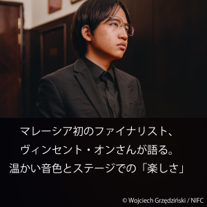 ショパンコンクールは私にとって自分を成長させる素晴らしい機会であり、世界中の多くの人々と音楽を分かち合う素晴らしい機会でもありました。自分の持てる力すべてを世界中の皆様に届けられたこと、心から幸せで、誇りに感じています。